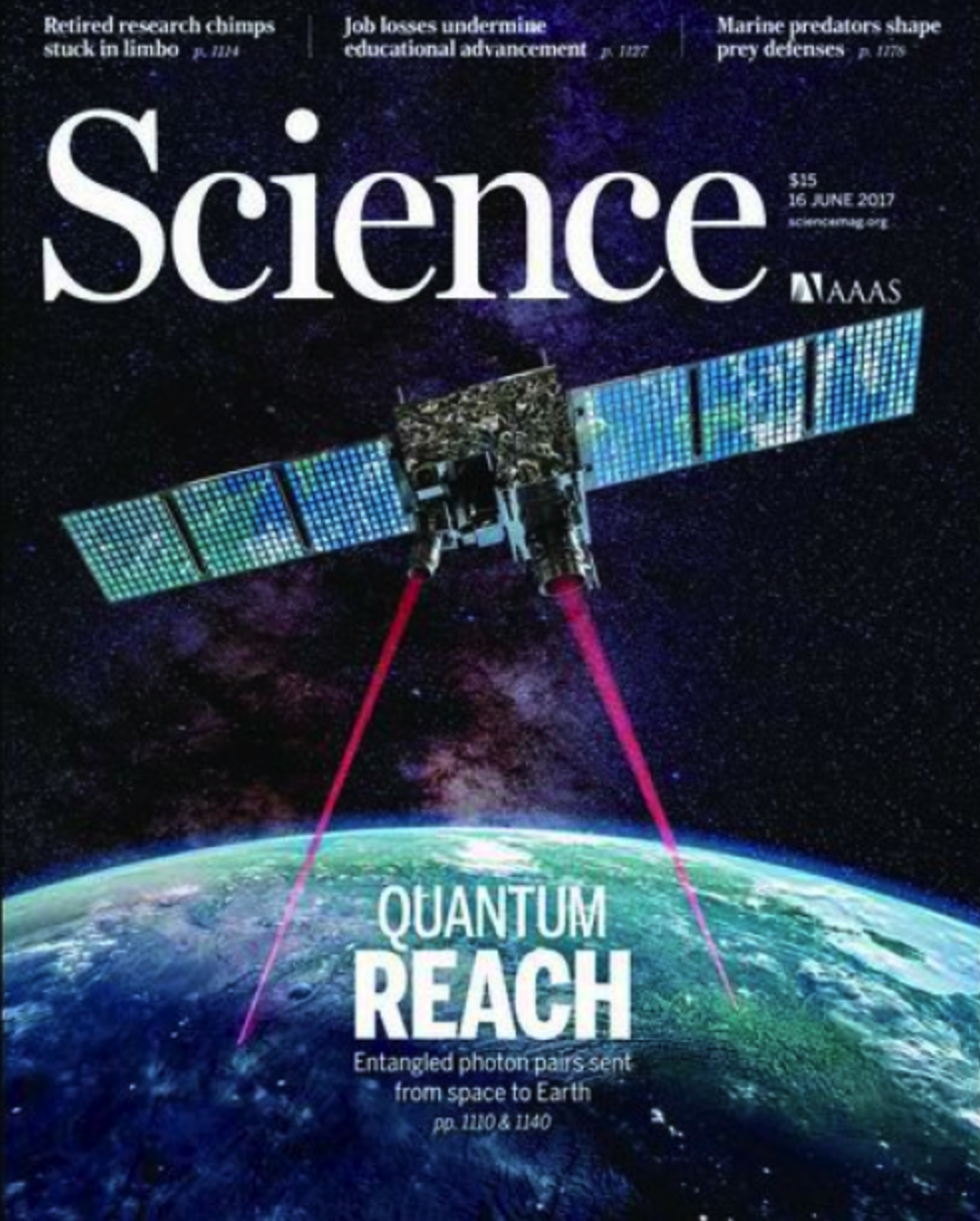 2017年6月16日,千公里級星地量子糾纏分發(fā)實驗登上《科學(xué)》封面。