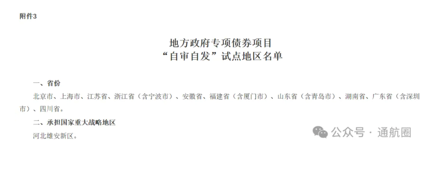 3.地方政府專項債券項目“自審自發(fā)”試點地區(qū)名單