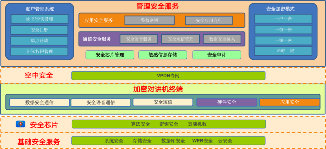 海高思加密對講機(jī)不止軟件加密,硬件也同樣機(jī)密。只通過VPDN傳輸,私密性更強(qiáng)。我們的后臺服務(wù)系統(tǒng)使用的也是國產(chǎn)的商密算法還提供自定義算法。
